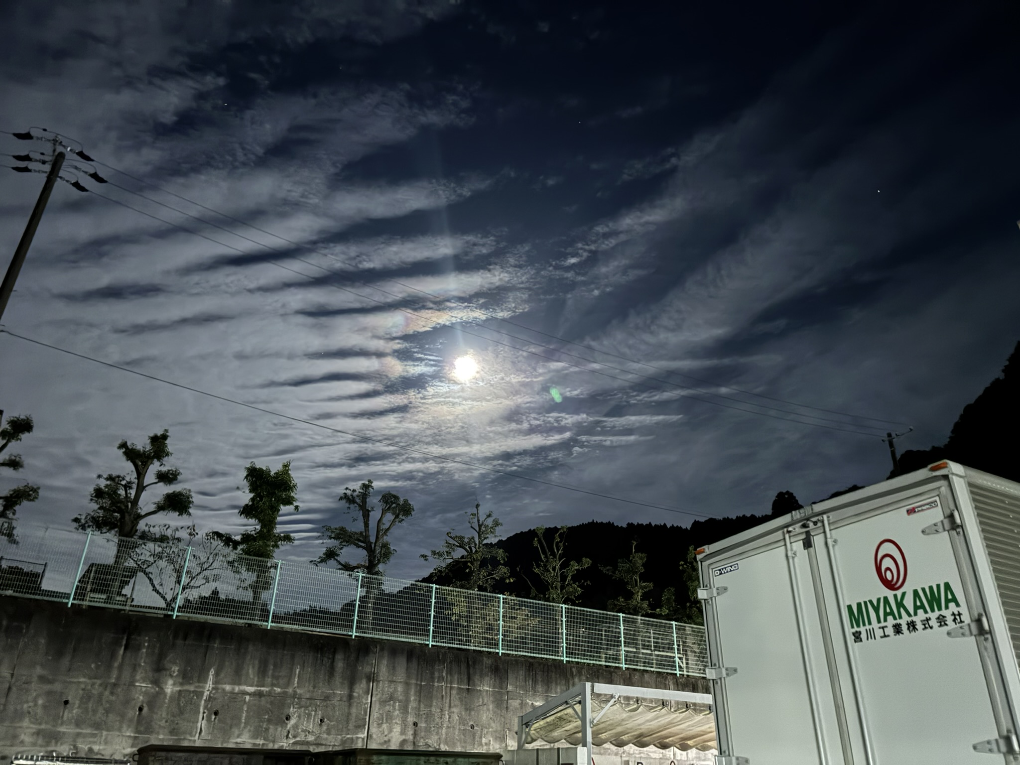 2025年12月3日 / 最終更新日時 : 2025年11月19日 mkincadmin 最近のお知らせ トラックと満月 深まる秋に、冬の足音もすぐそこまで来ています。日暮れが早くなったおかげで、夜空の時間が増えました。先日の満月はひときわ明るく、写真に撮ると太陽と見間違えるほど力強い光でした。(当社のトラックは毎日、安全運転に留意し、大切なサクションマフラー製品を静岡のお客様までお届けしています。)